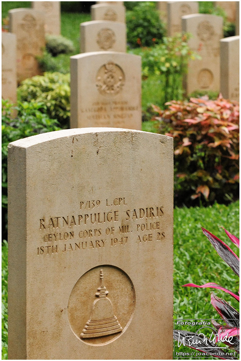 Por la tarde fuimos al Orfanato de Elefantes de Pinnawala, un sitio muy turístico donde recogían y criaban la mayor manada de elefantes asiáticos del mundo. Dimos unos biberones a las crías y nos hicimos unas fotos cuando más fuerte llovía. De vuelta al hotel paramos un momento junto al War Cemetery que estaba cerrado; a pesar del barrizal y de la lluvia intermitente pude tomar unas cuantas fotos.