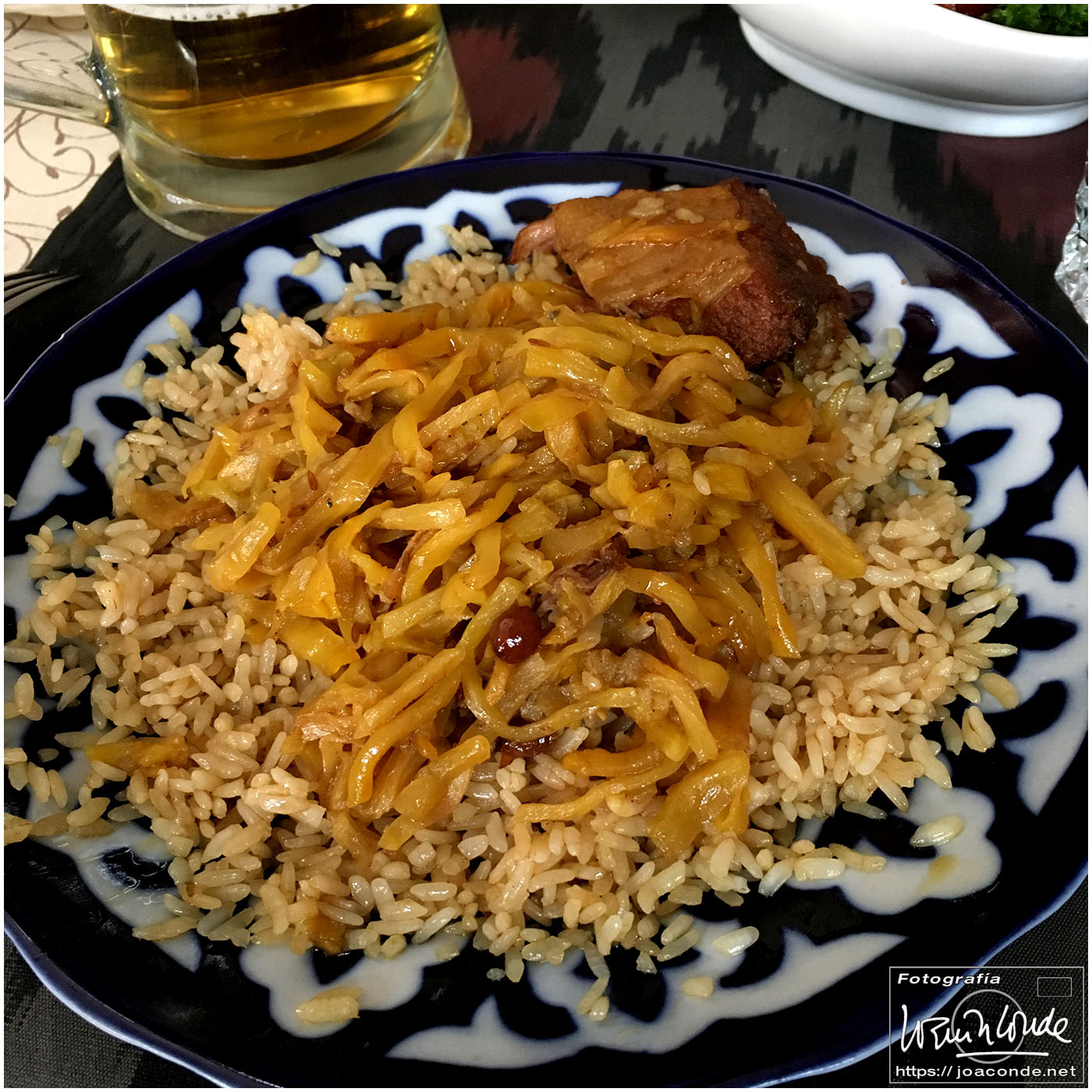 Nosotros empezamos el viernes visitando la Plaza Registán, sin duda una de las más hermosas del mundo, con las madrasas de Ulugbek, Sher–Dor y Tillaqori, la Mezquita Bibi Khanum, y el Mercado Siyob. Comimos en el Karimbek, un restaurante de culto. Por la tarde nos acercamos al Mausoleo de Amir Temur (junto a la calle Rui Gonsales de Klavixo) y volvimos a la Plaza Registán para ver el ocaso, que por lo nublado no fue nada brillante.