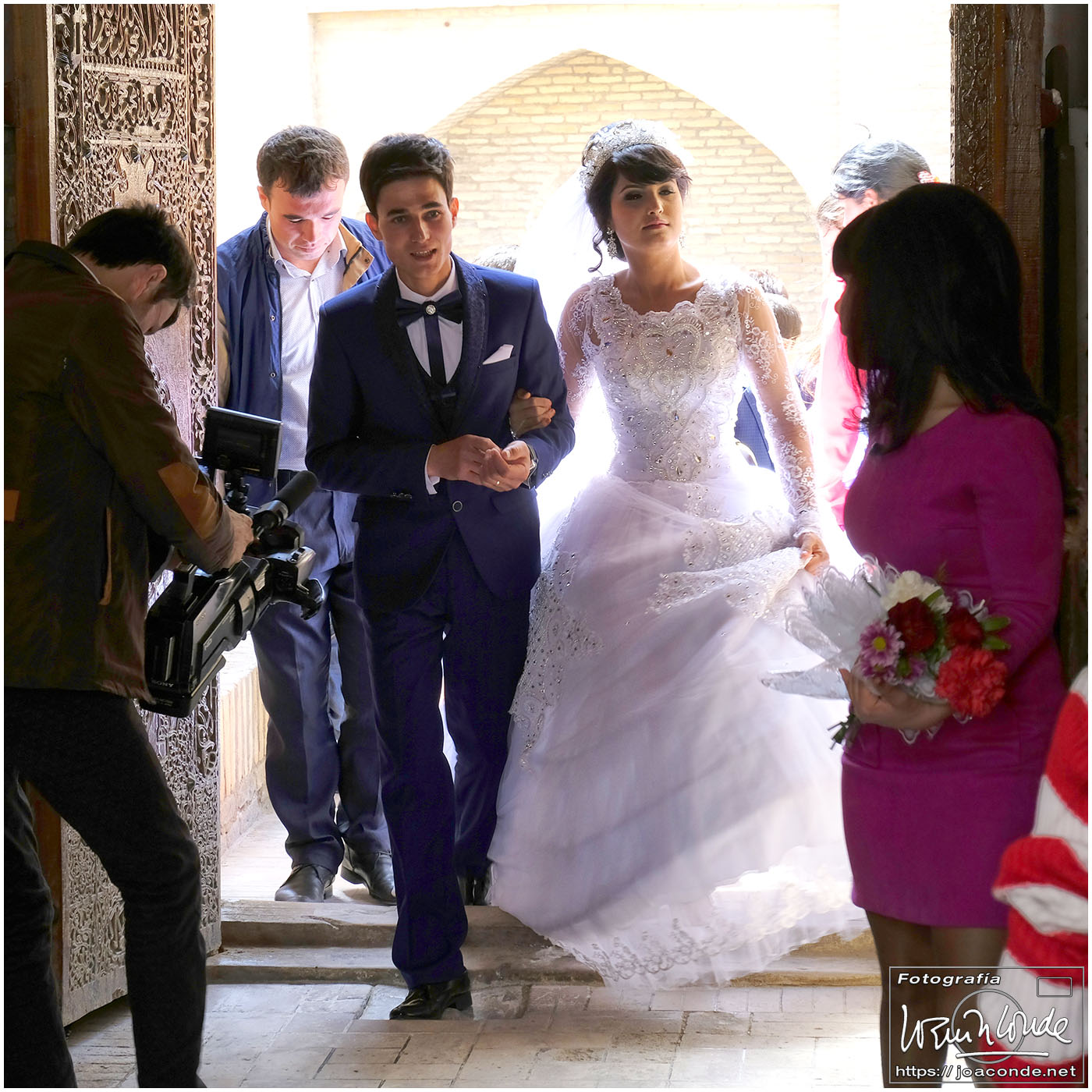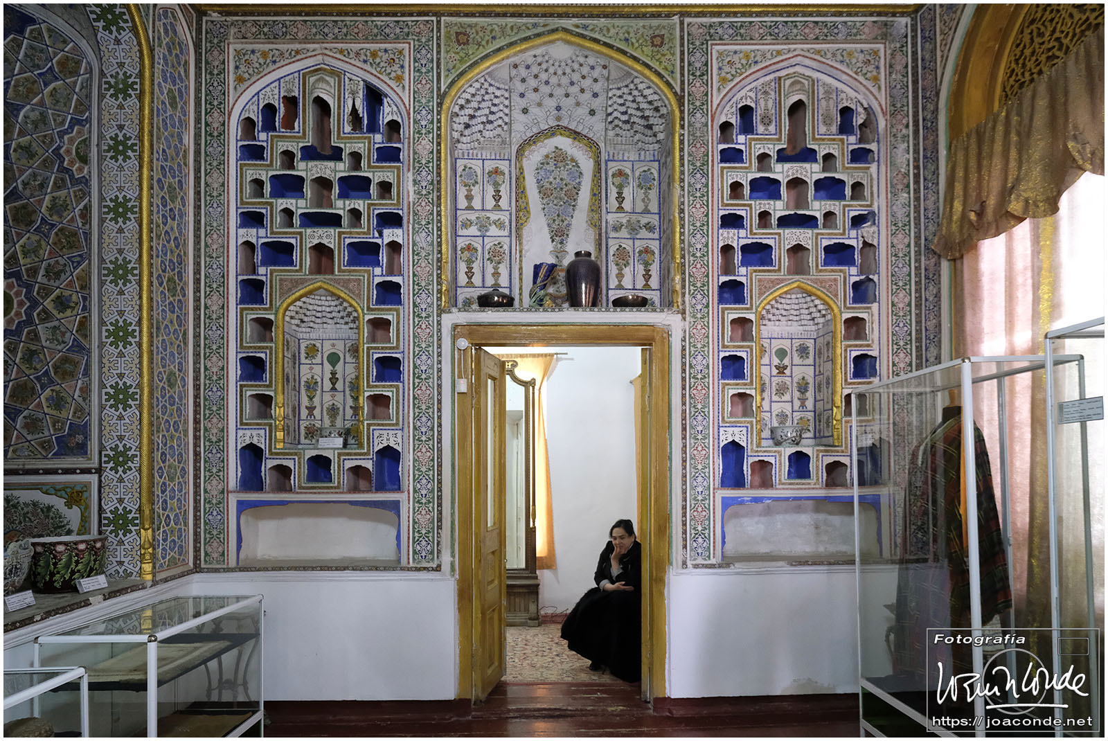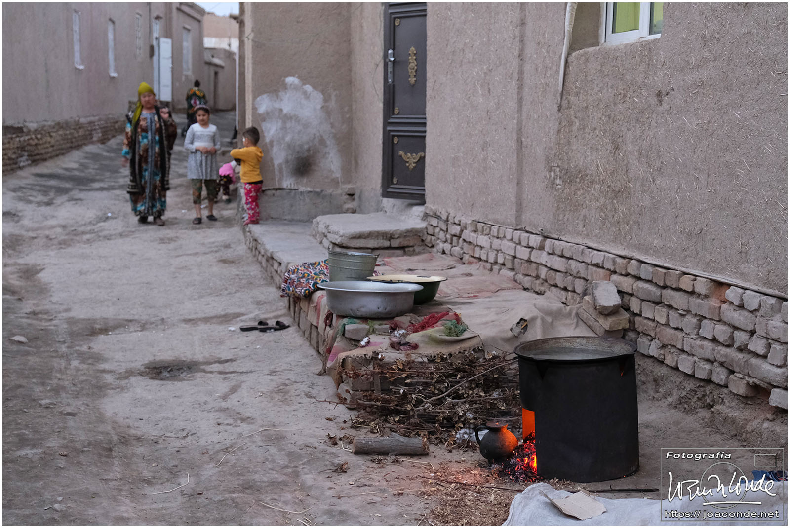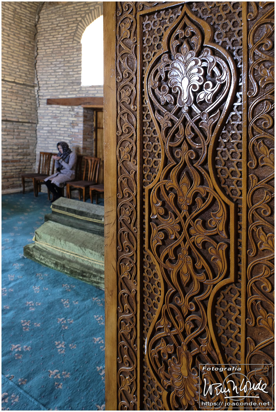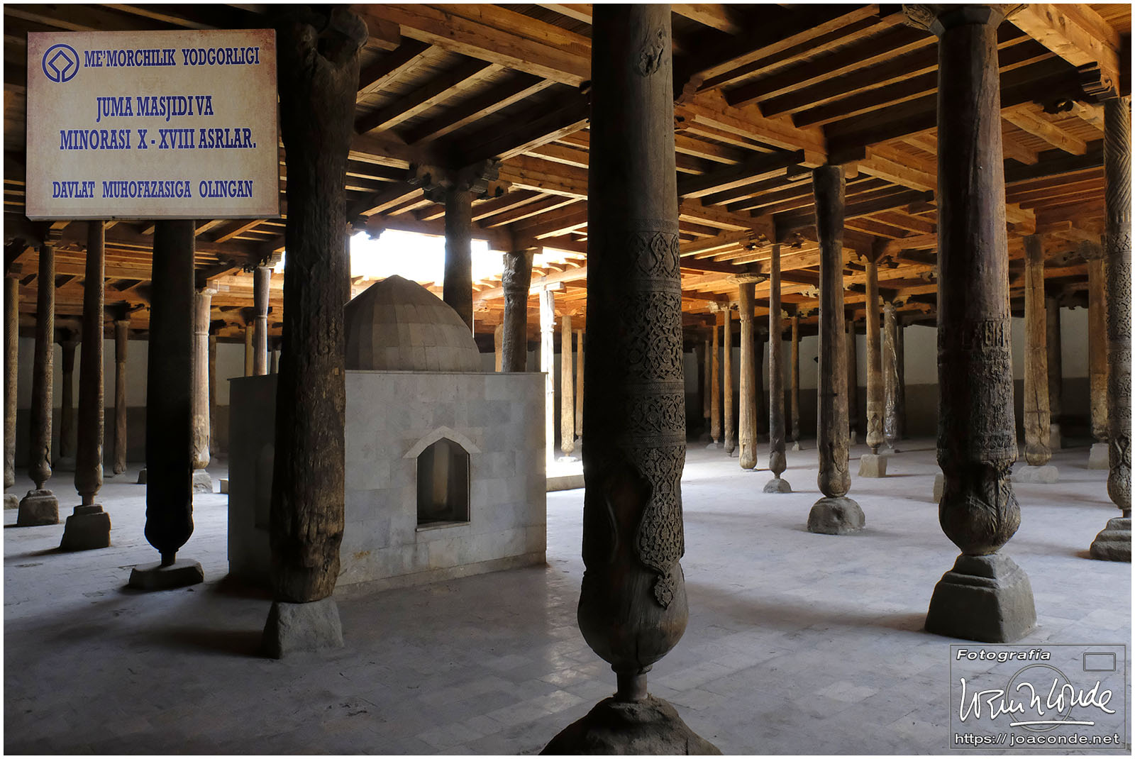 En el centro de Jiva, Itchan Kala era una ciudadela impresionante y muy bien conservada. Recorrimos el conjunto Kuñya-Ark (s. II A.C.), Tash Javli (palacio de piedras), Kalta Minor, la mezquita Djumá con 212 columnas de madera (ss. XI -XVIII), la madrasa de Shergazi-khan, el mausoleo Sagrado Pakhlavon-Makhmud (ss. XII y XIII), la madrasa de Alloquli Khan, el conjunto de Islam Khodja… Era un día de bodas, de visitas escolares… Por la noche, cuando se marcharon los turistas, volvimos a la ciudadela iluminada.