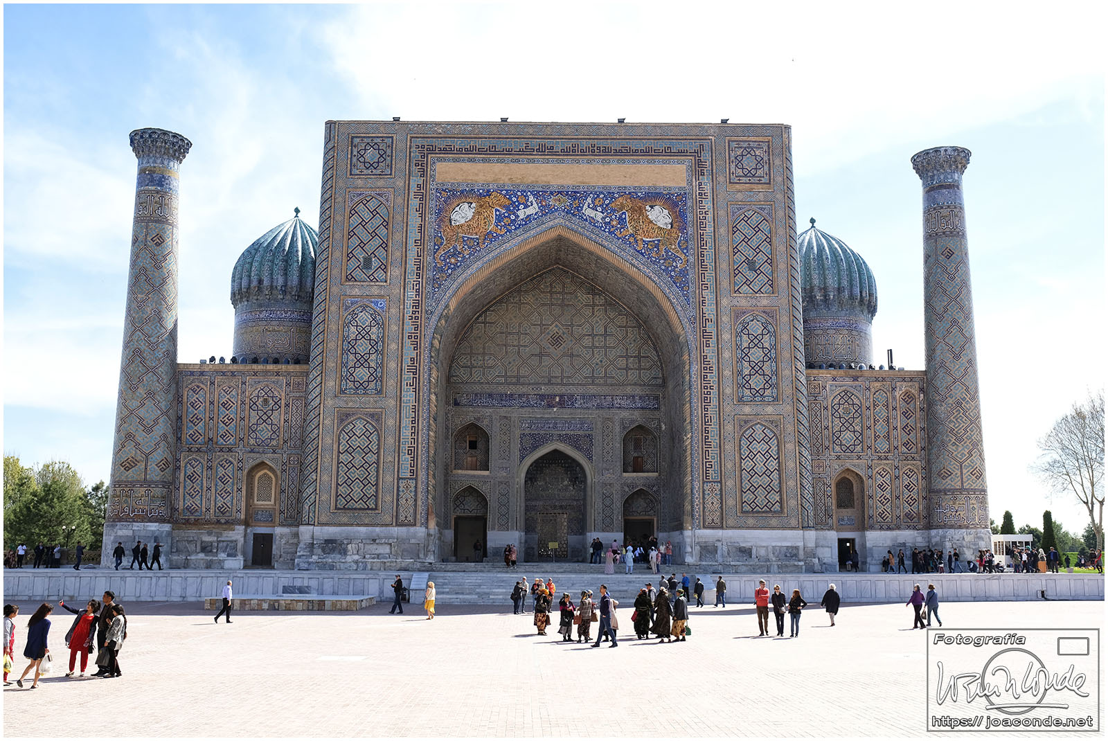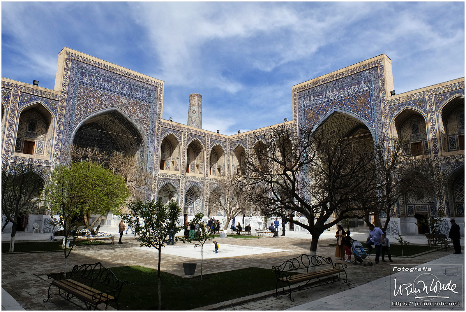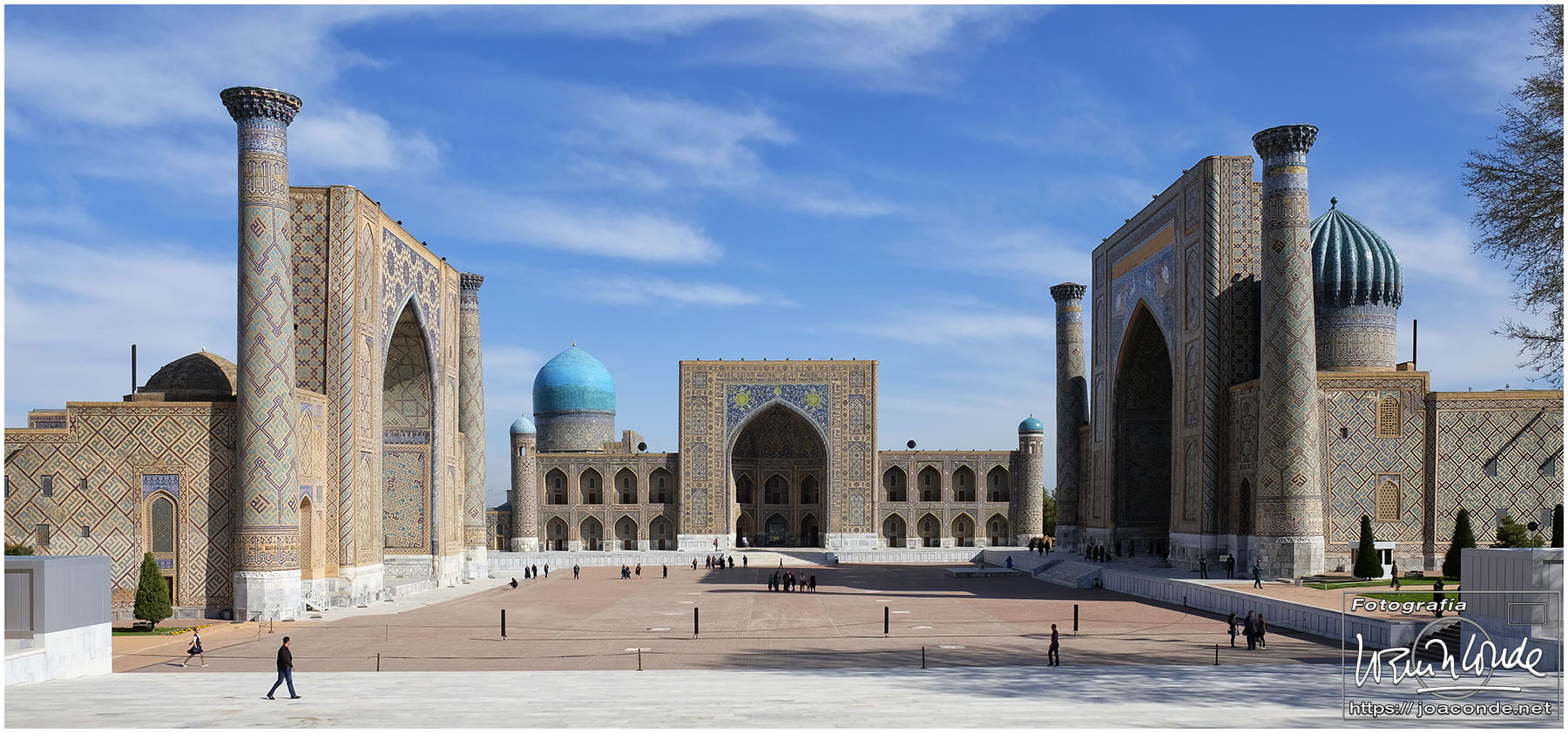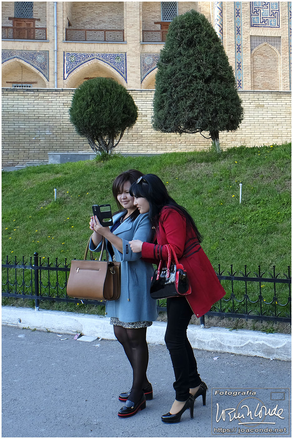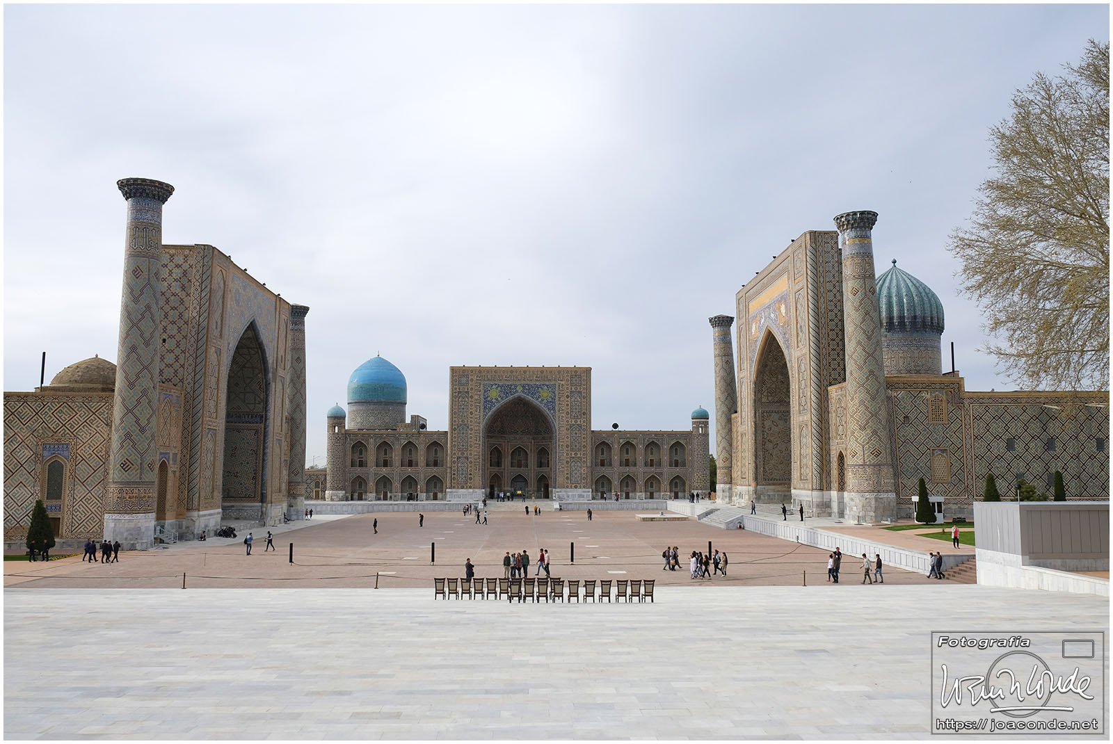 Nosotros empezamos el viernes visitando la Plaza Registán, sin duda una de las más hermosas del mundo, con las madrasas de Ulugbek, Sher–Dor y Tillaqori, la Mezquita Bibi Khanum, y el Mercado Siyob. Comimos en el Karimbek, un restaurante de culto. Por la tarde nos acercamos al Mausoleo de Amir Temur (junto a la calle Rui Gonsales de Klavixo) y volvimos a la Plaza Registán para ver el ocaso, que por lo nublado no fue nada brillante.