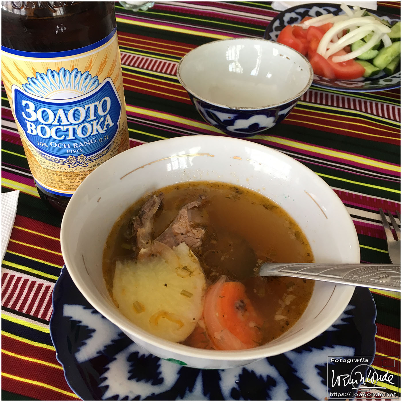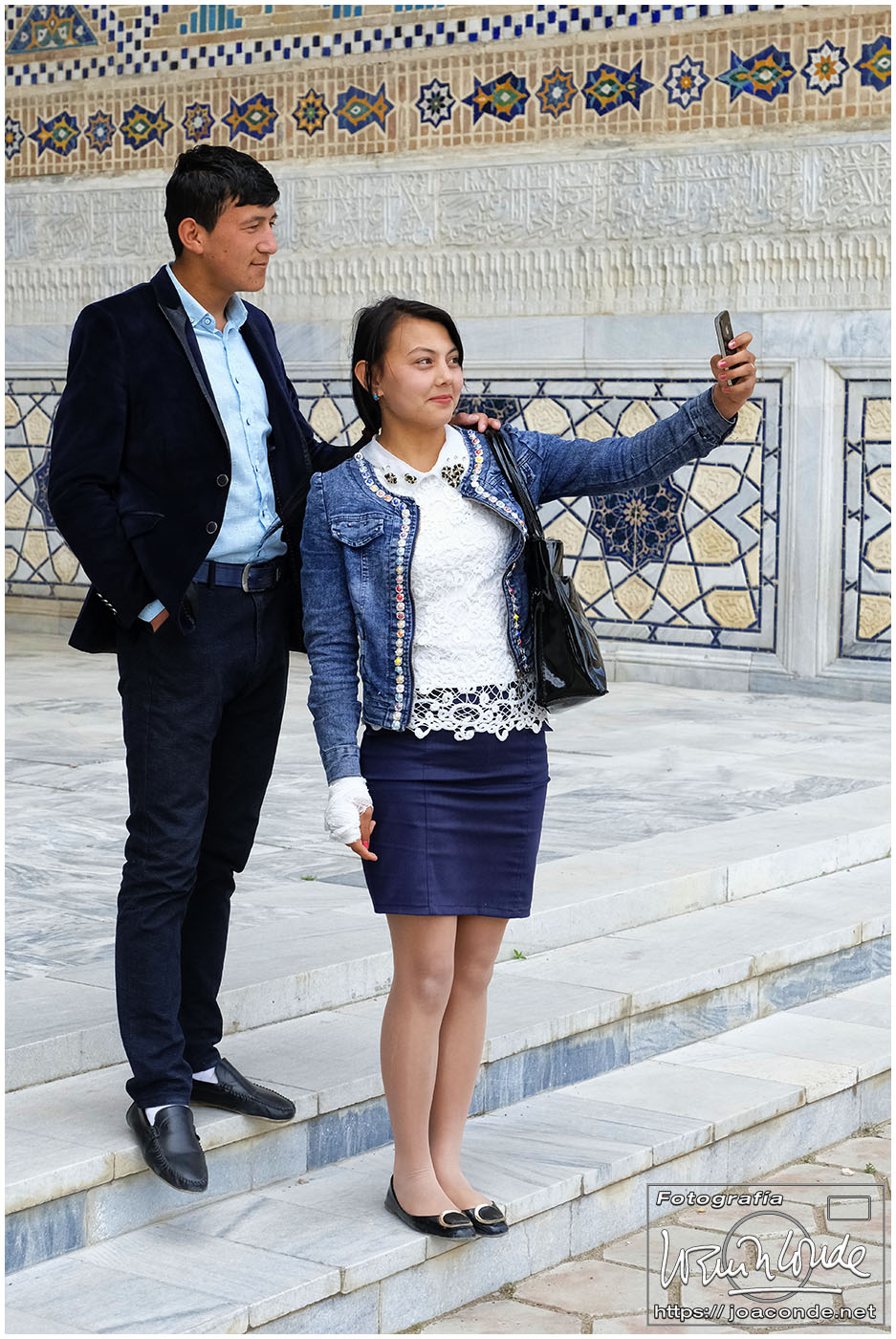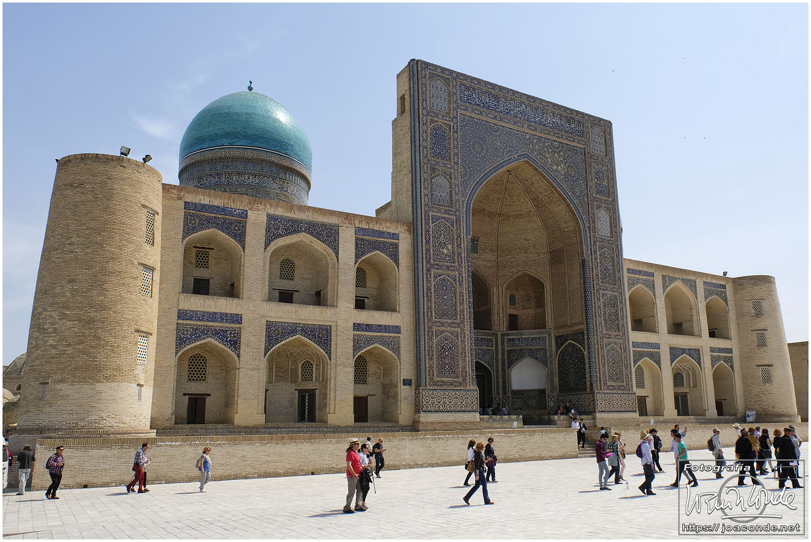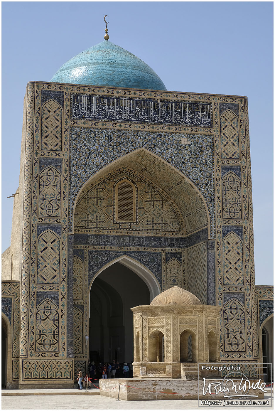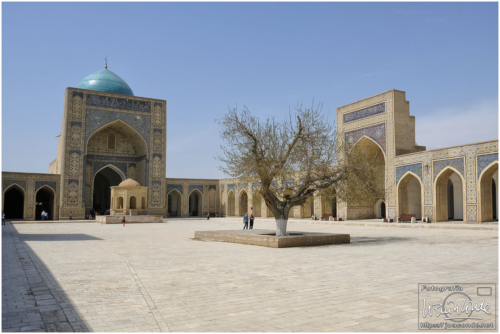 Nosotros empezamos el viernes visitando la Plaza Registán, sin duda una de las más hermosas del mundo, con las madrasas de Ulugbek, Sher–Dor y Tillaqori, la Mezquita Bibi Khanum, y el Mercado Siyob. Comimos en el Karimbek, un restaurante de culto. Por la tarde nos acercamos al Mausoleo de Amir Temur (junto a la calle Rui Gonsales de Klavixo) y volvimos a la Plaza Registán para ver el ocaso, que por lo nublado no fue nada brillante.