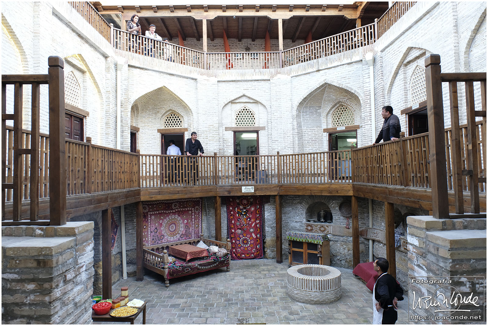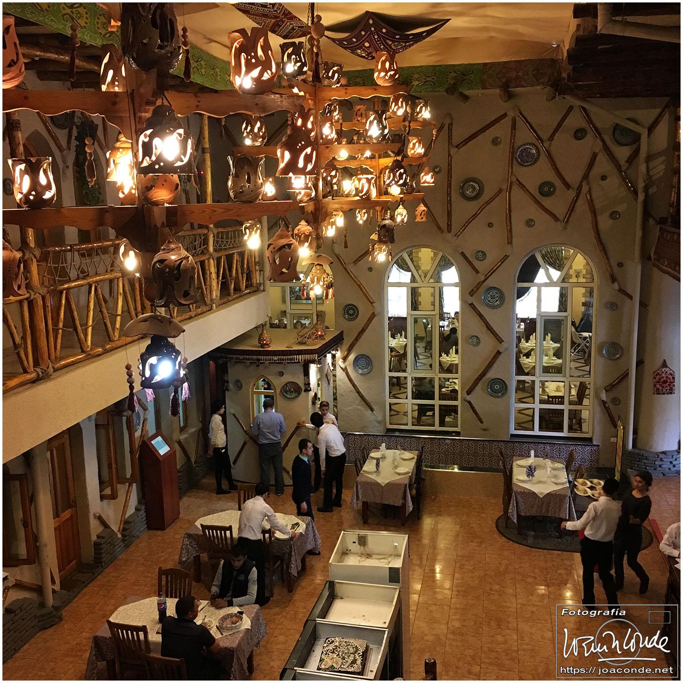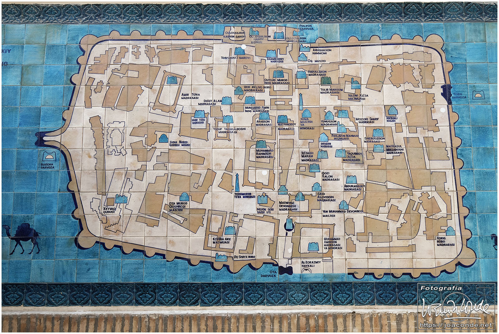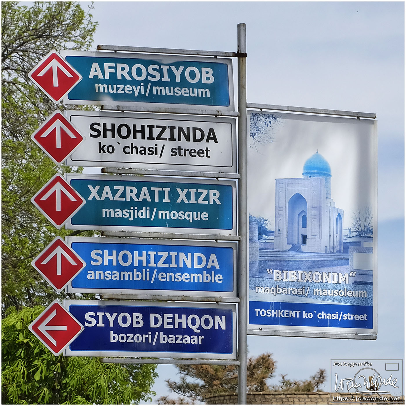 Nosotros empezamos el viernes visitando la Plaza Registán, sin duda una de las más hermosas del mundo, con las madrasas de Ulugbek, Sher–Dor y Tillaqori, la Mezquita Bibi Khanum, y el Mercado Siyob. Comimos en el Karimbek, un restaurante de culto. Por la tarde nos acercamos al Mausoleo de Amir Temur (junto a la calle Rui Gonsales de Klavixo) y volvimos a la Plaza Registán para ver el ocaso, que por lo nublado no fue nada brillante.
