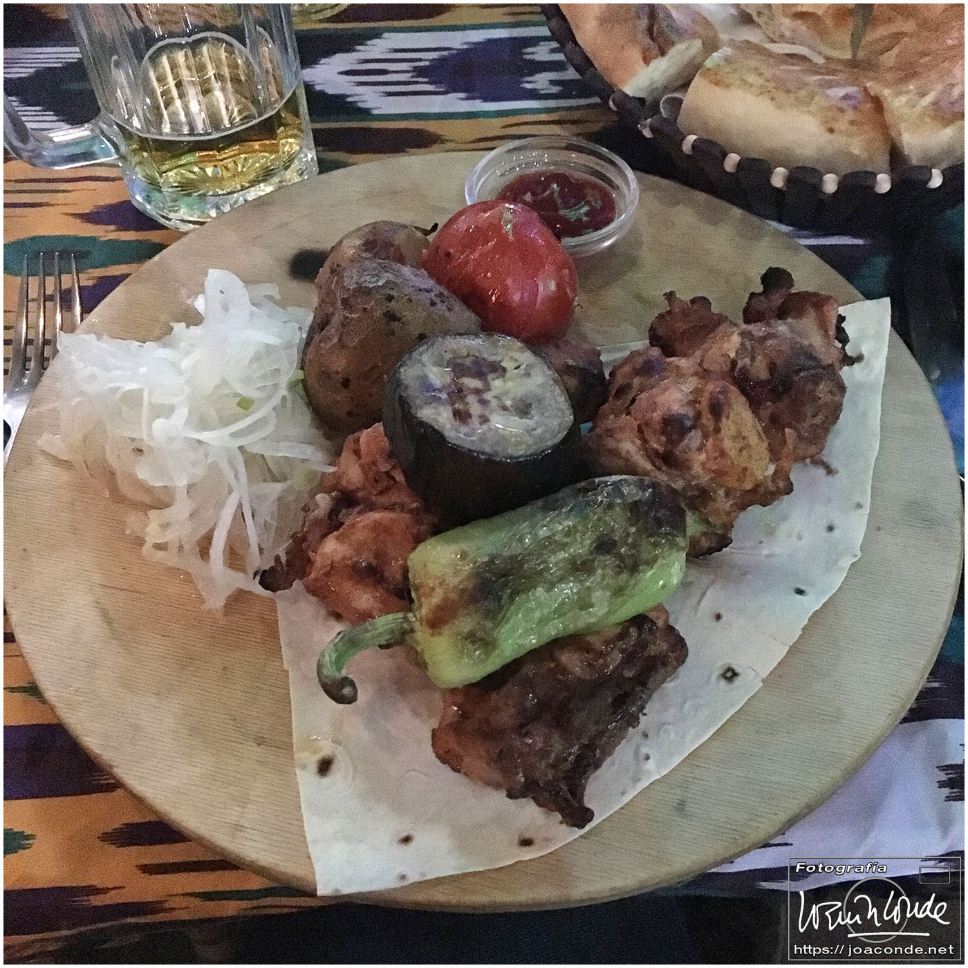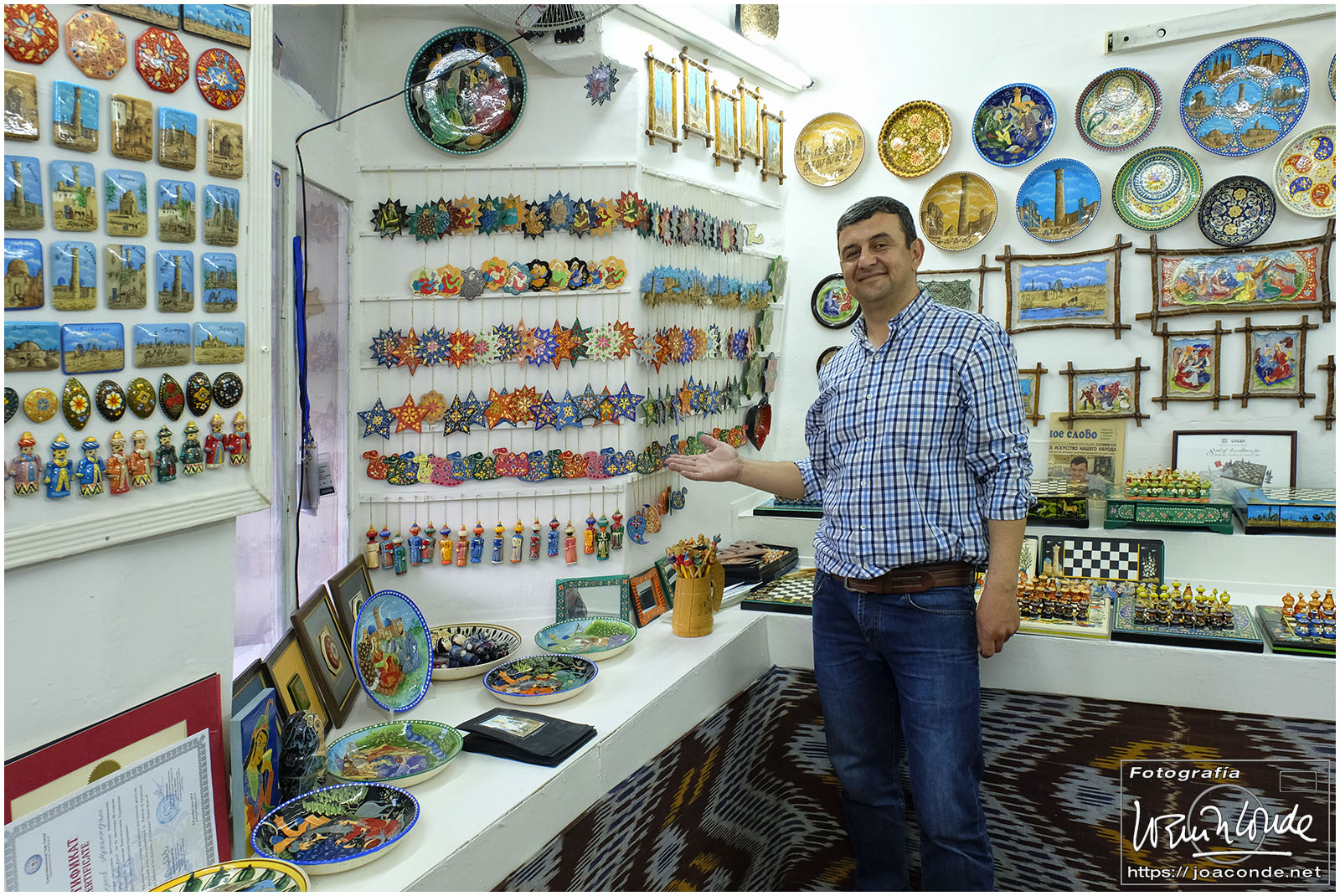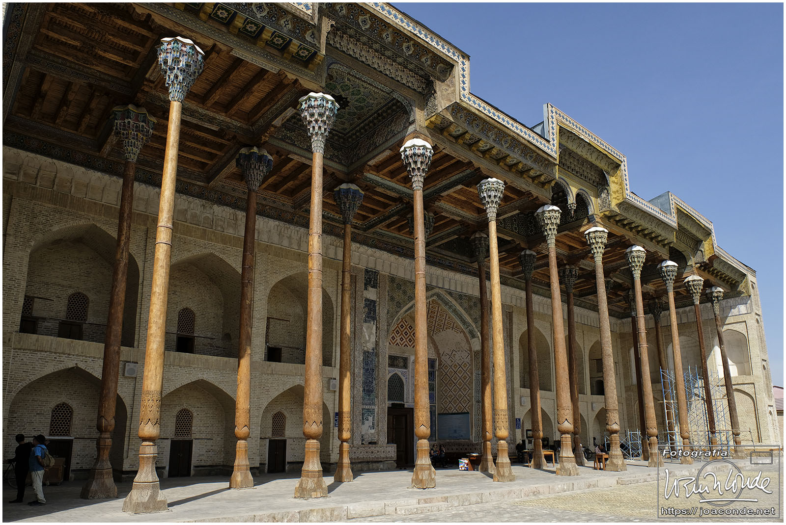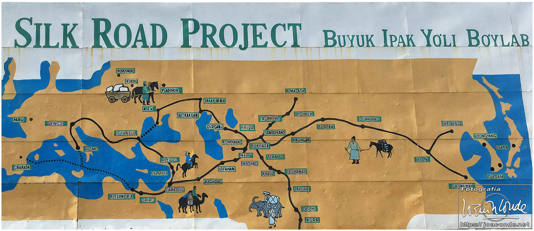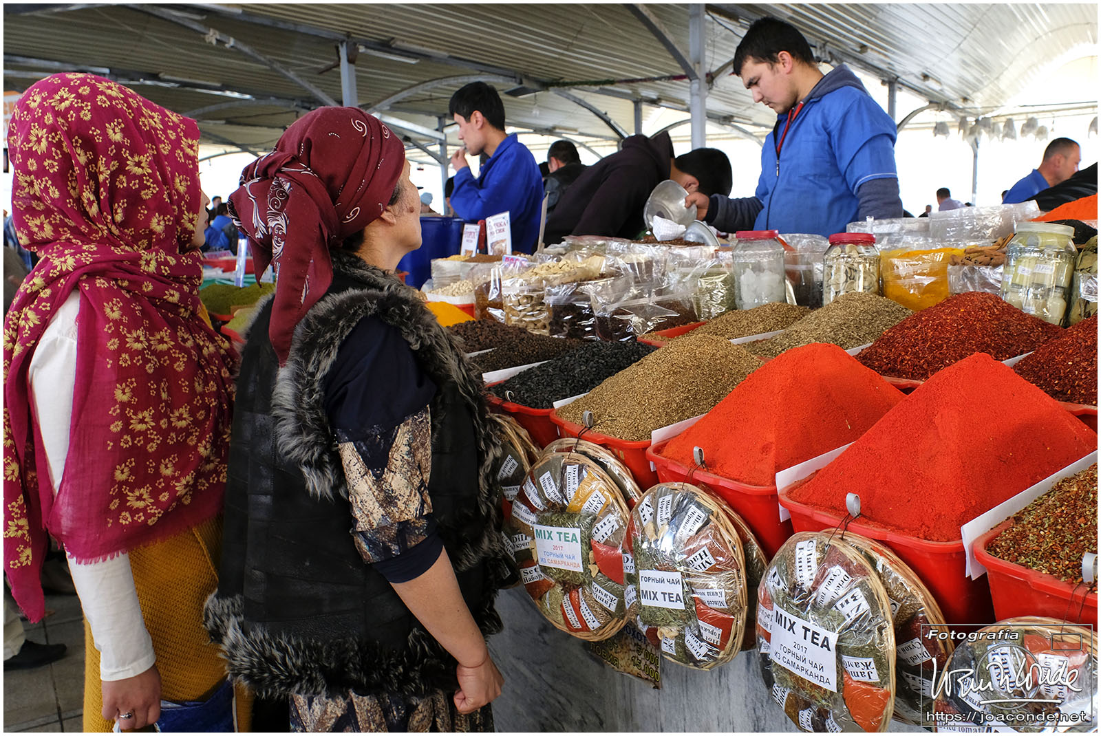 Nosotros empezamos el viernes visitando la Plaza Registán, sin duda una de las más hermosas del mundo, con las madrasas de Ulugbek, Sher–Dor y Tillaqori, la Mezquita Bibi Khanum, y el Mercado Siyob. Comimos en el Karimbek, un restaurante de culto. Por la tarde nos acercamos al Mausoleo de Amir Temur (junto a la calle Rui Gonsales de Klavixo) y volvimos a la Plaza Registán para ver el ocaso, que por lo nublado no fue nada brillante.