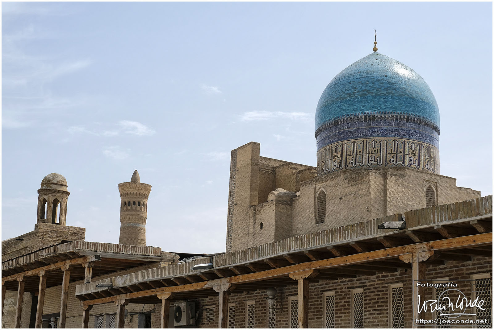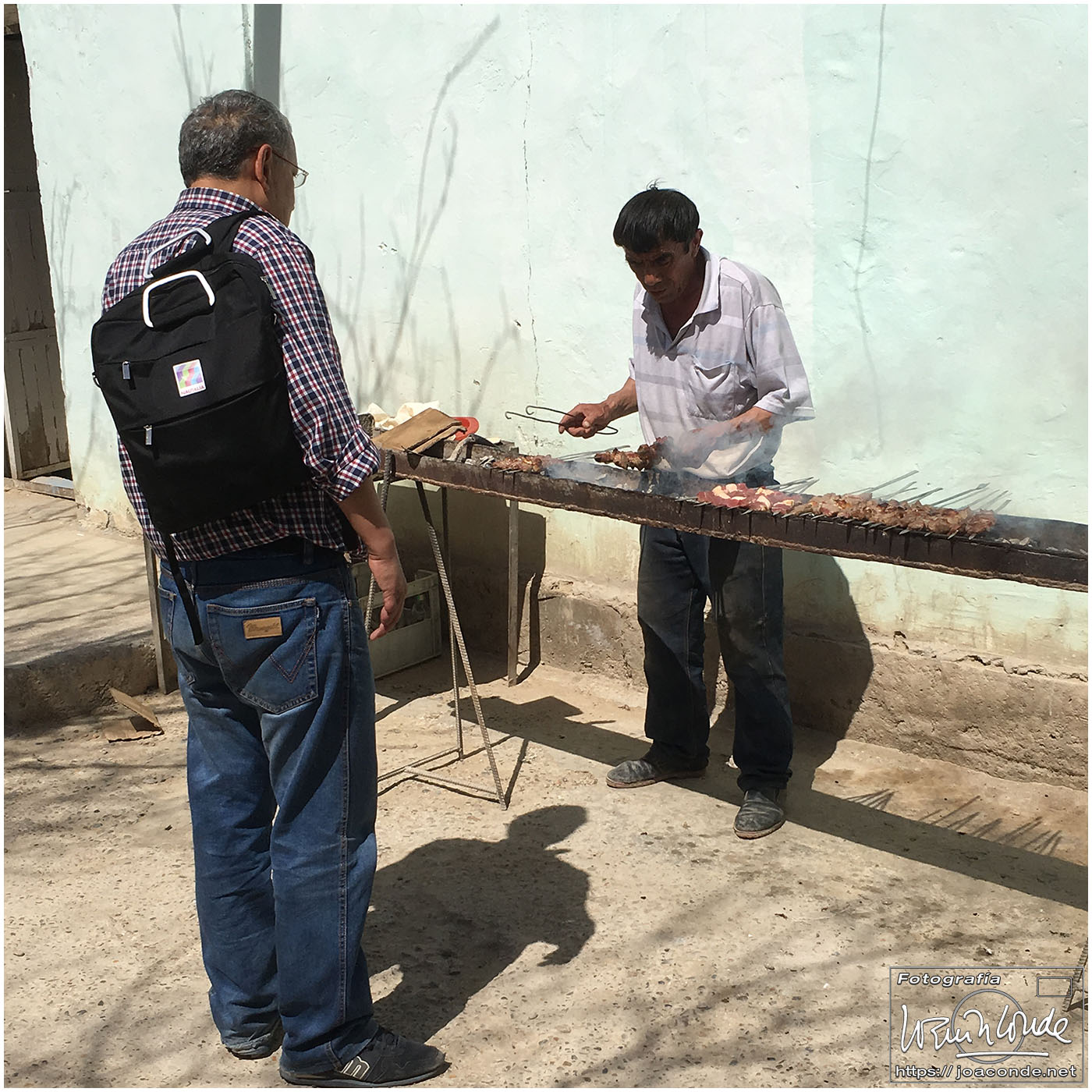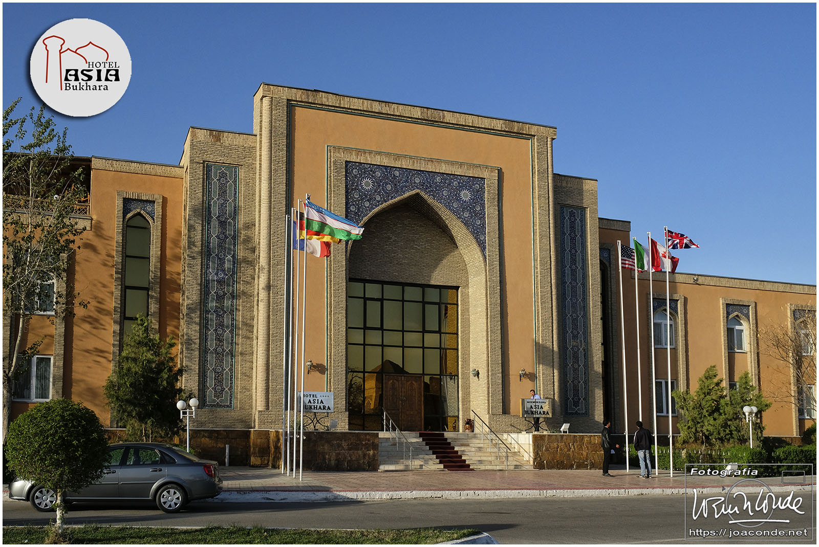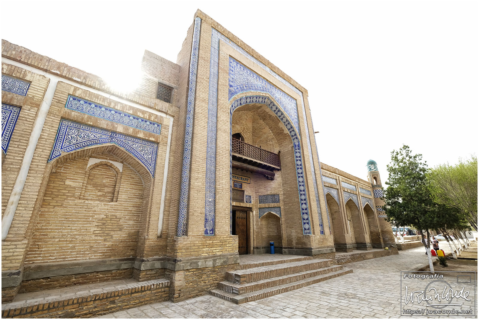 De Jiva a Bujará había unos 400 km, más de seis horas en coche por el desierto. De vez en cuando algún pastor, pero nada más. Paramos a desaguar —en medio de aquella nada— y yo me adentré en aquel arenal… De pronto se me acercó un hombre armado y me hizo señales de que me fuera para atrás. Sadir me dijo después que había hecho pis en la misma frontera de Turkmenistán 😯. Afortunadamente, todo quedó en unas risas😂. Comimos en un bar de carretera; las mesas eran algo incómodas pero tuvieron el detalle de ponernos una de las nuestras. Por la tarde llegamos a Bujará.