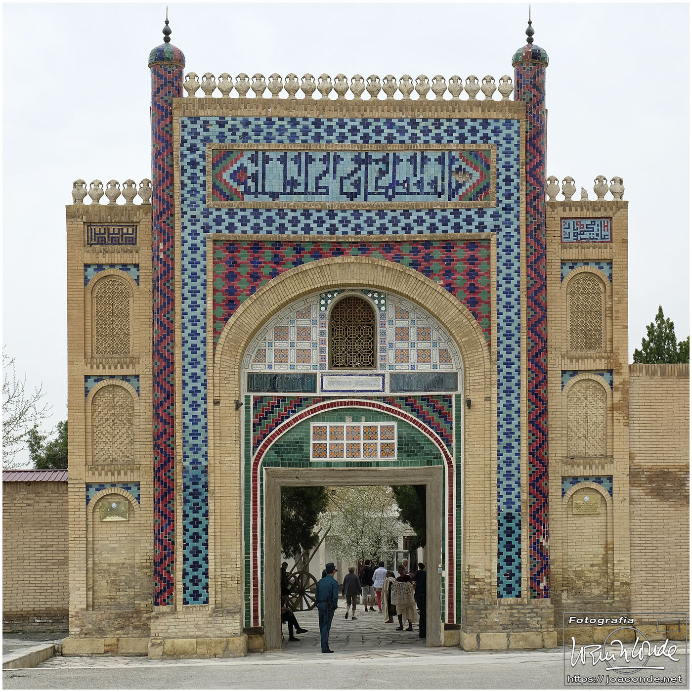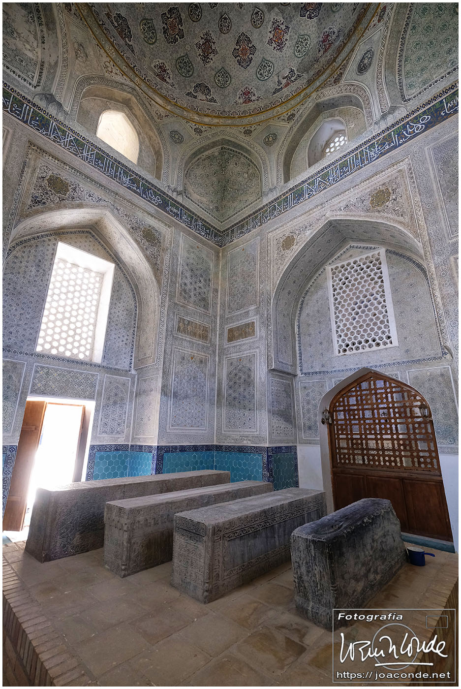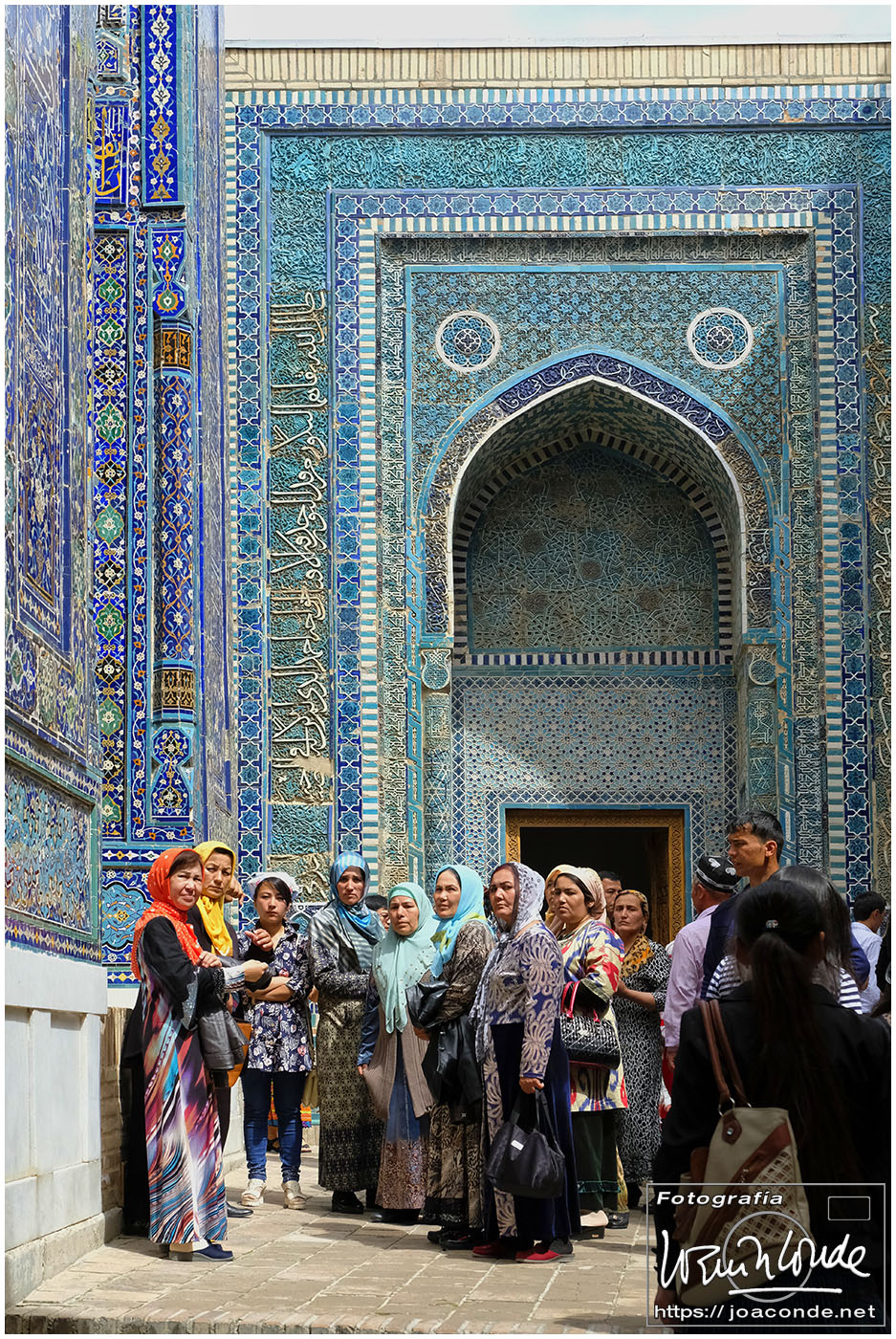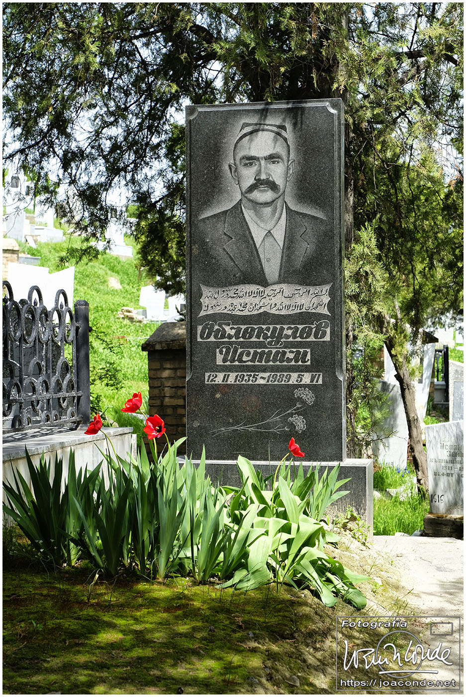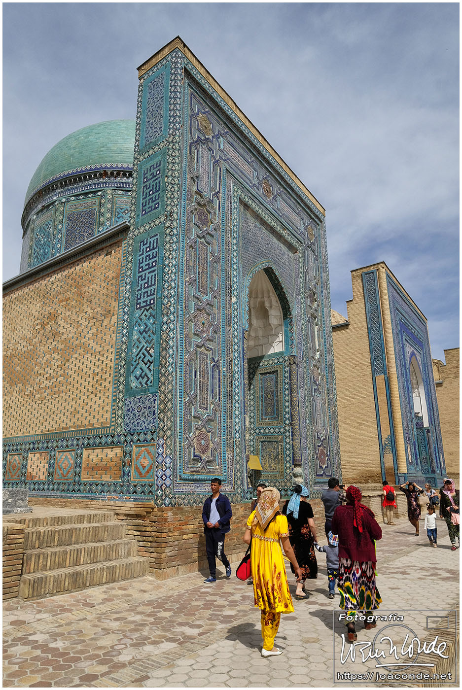 El sábado, último día en Uzbekistán, después de dejar el hotel fuimos al Observatorio de Ulugbek (s. XV) y al Museo de Afrosiyob. Terminamos las visitas en la Necrópolis Shohi Zinda (ss. XI-XVII), una infinidad de mausoleos ricamente decorados. Había muchos visitantes —incluso un grupo de cordobeses que ya habíamos visto en Bujará— y la visita fue rápida. También hice algunas fotos en el cementerio moderno que había en el recinto.