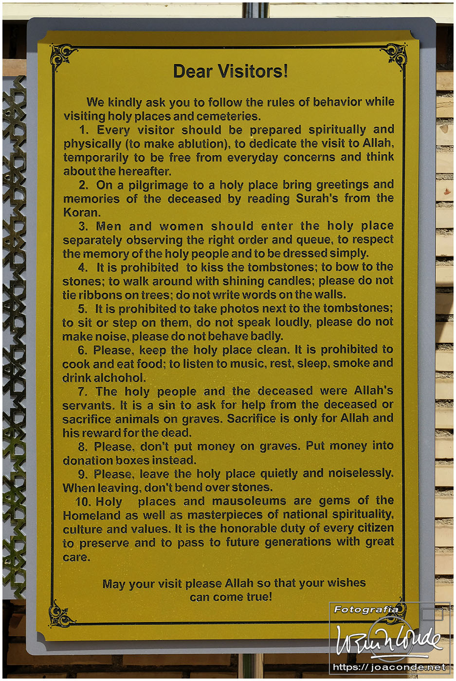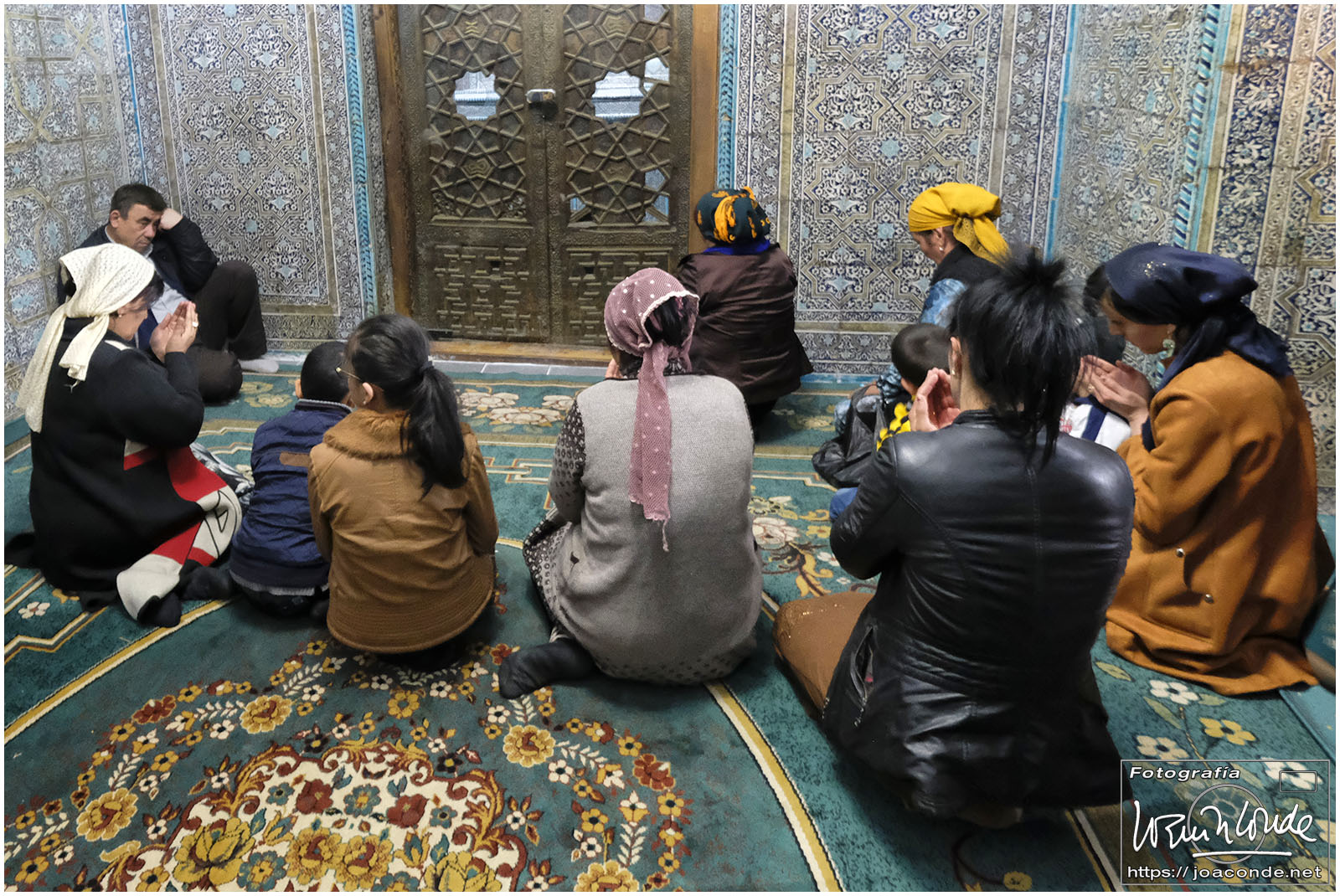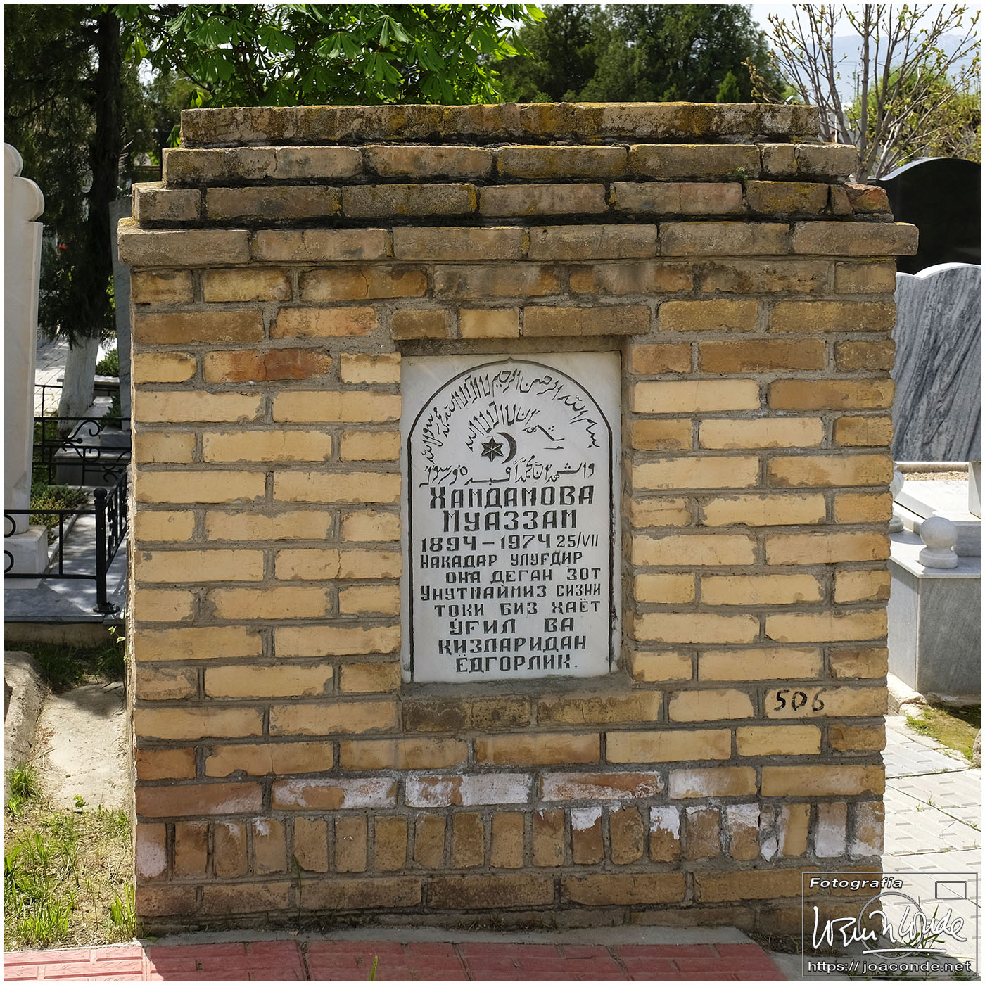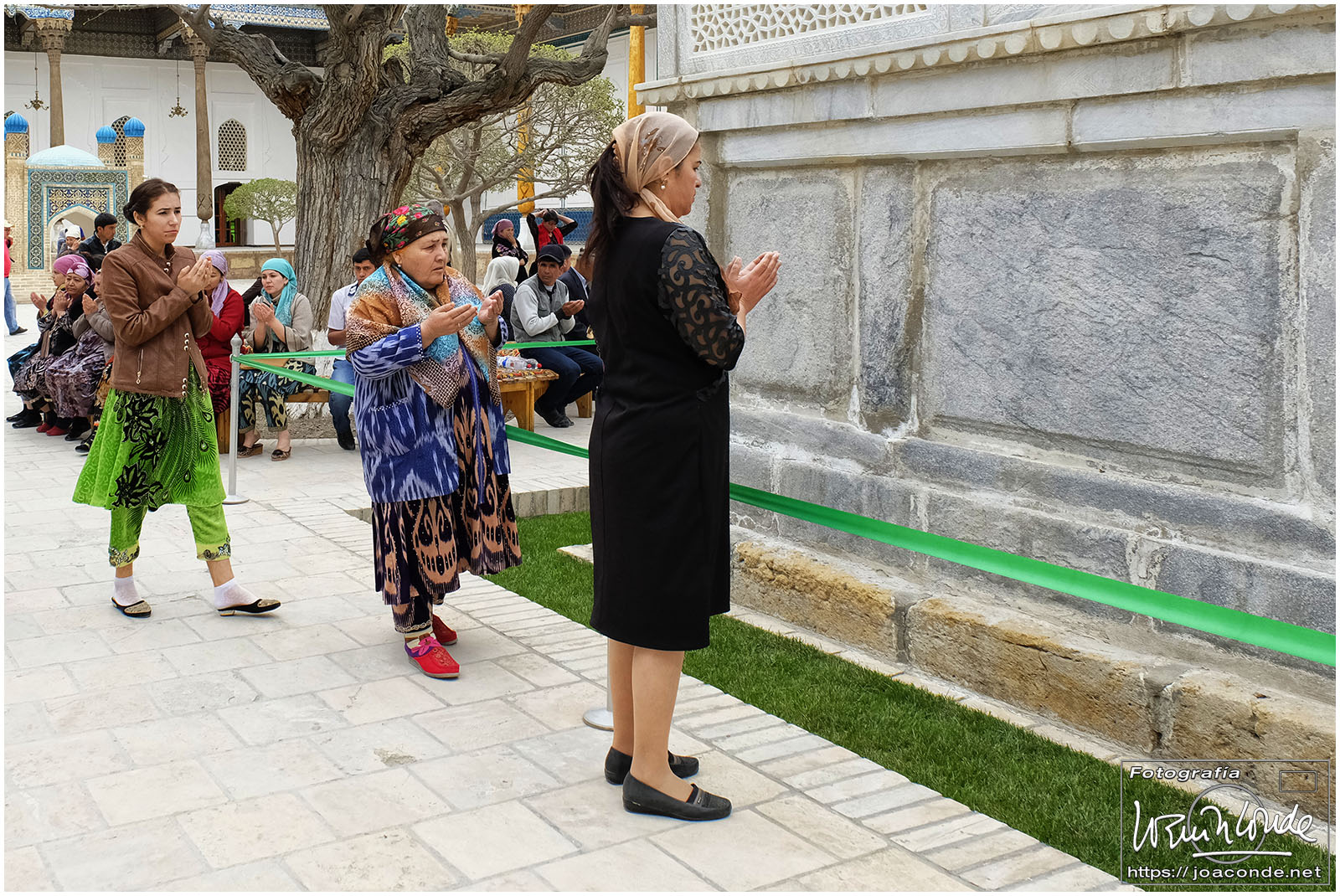 El sábado, último día en Uzbekistán, después de dejar el hotel fuimos al Observatorio de Ulugbek (s. XV) y al Museo de Afrosiyob. Terminamos las visitas en la Necrópolis Shohi Zinda (ss. XI-XVII), una infinidad de mausoleos ricamente decorados. Había muchos visitantes —incluso un grupo de cordobeses que ya habíamos visto en Bujará— y la visita fue rápida. También hice algunas fotos en el cementerio moderno que había en el recinto.