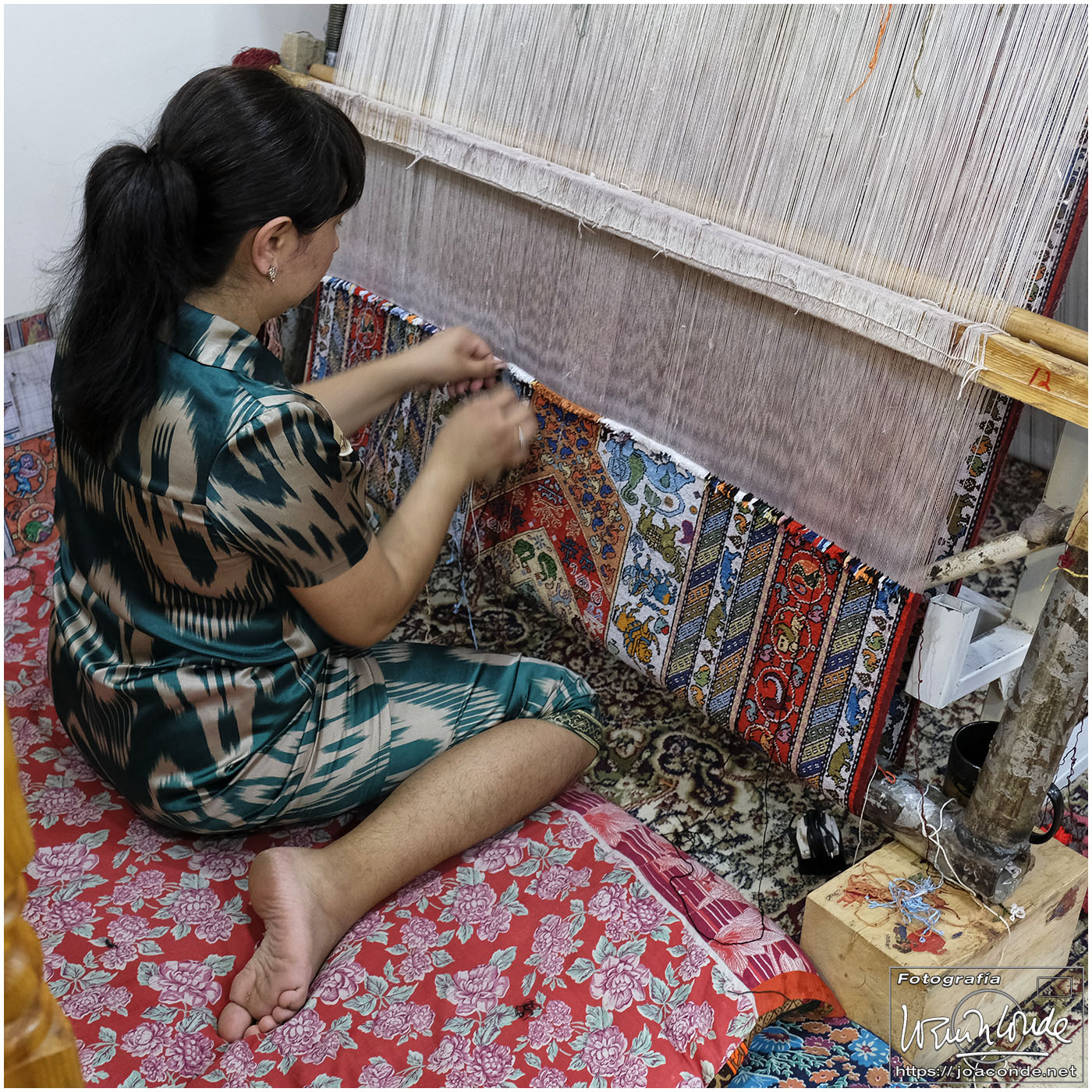 El último día en Bujará fuimos a ver la Madrasa Chor Minor (la de los cuatro minaretes), el Mausoleo de Bahovaddin Nakshbandila con el árbol de los deseos, el Museo Sitorai Mohi Hosa, y la Necrópolis de Chor Bakr. Después de comer entramos en un taller que tejían alfombras y por último visitamos la Madrasa de Ulugbek.