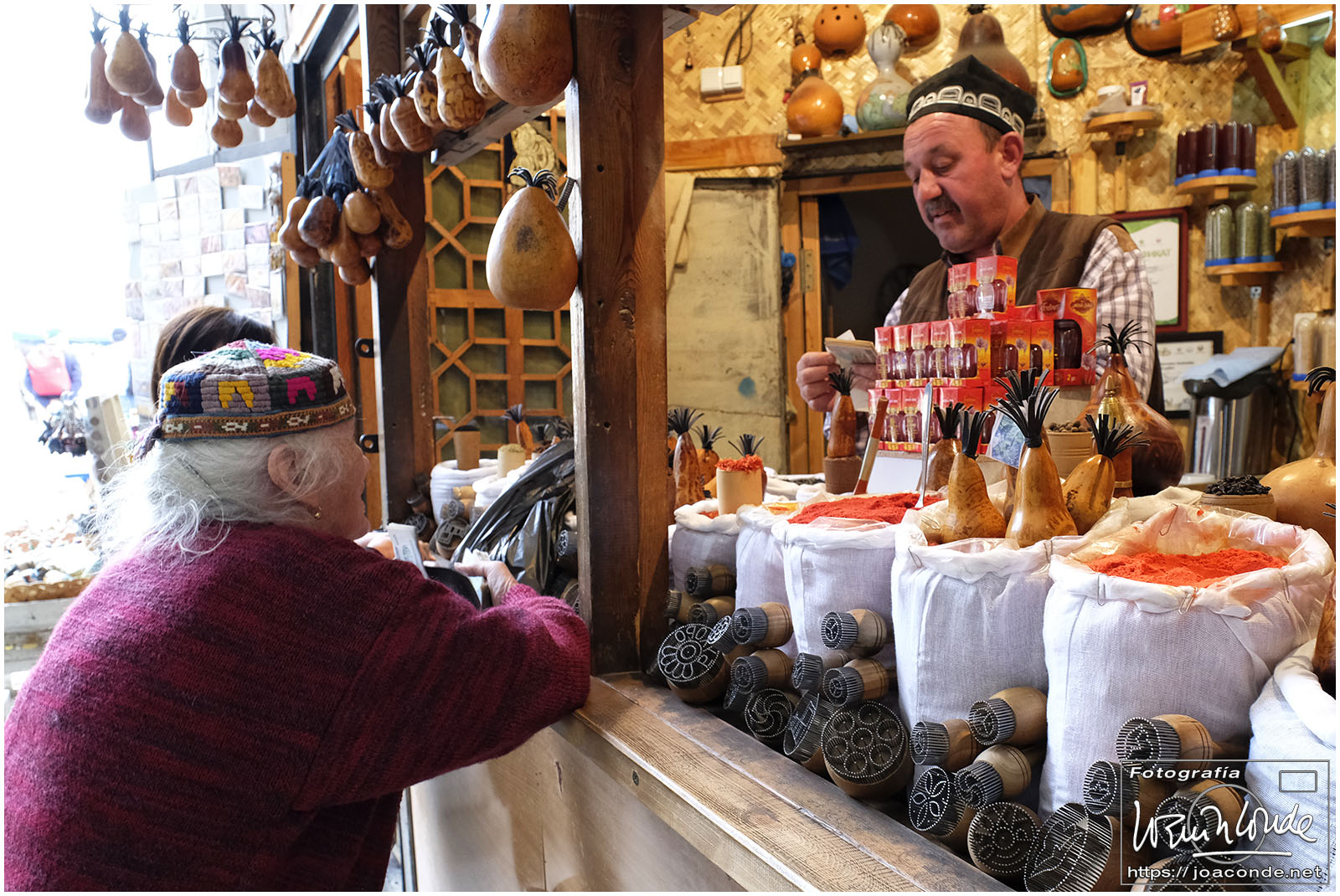 En Taskent visitamos el complejo Jast Imom y las madrasas de Kukaldosh y Abdulkasim, de los siglos XVI-XIX. A mediodía comimos el primer plov de la semana, un plato típico exquisito. Después fuimos al mercado principal de “Chorsu”, para buscarle un zurna a mi amigo Javier Márquez. Después visitamos el museo de artes aplicadas y a la caída de la tarde volamos a Urgench, para dormir en el Hotel Asia, ya en Jiva.