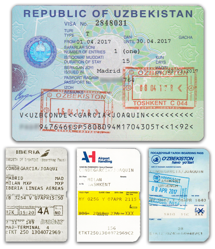 Después de varios intentos, en abril de 2017 pudimos viajar a Uzbekistán. Siempre me había apasionado la Ruta de la Seda. Durante siglos, en Asia central se desarrollaron ciudades para el descanso y avituallamiento de aquellos mercaderes. En este viaje conocimos tres de ellas, que también eran Patrimonio de la Humanidad: Jiva, Bujará y la mítica Samarcanda. Nos acompañó Sadir Khalilov, un guía excepcional, gran profesional y buenísima persona. El viernes 7 de abril volamos de Madrid a Milán, y después de muchas horas, llegamos a Taskent, la capital de Uzbekistán.